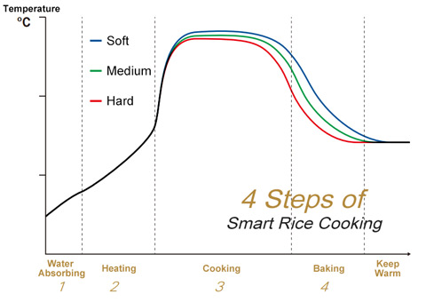 Heat is evenly distributed among grains of rice. The curve facilitates even heat convection. Having all the heat energy fully utilized, the rice cooker is energy-saving and able to perform prolonged high-temperature cooking.