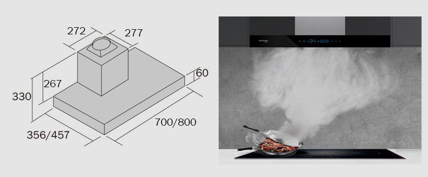As one of the most powerful range hood models on the market, the Digital Inverter Motor Intelligent Range Hood features a 24-interval fan speed range: from Level 1 at 850 RPM for prolonged ventilation, to Turbo Boost mode at 2,800+ RPM(3). Compared to range hoods with only 3 intervals (high, medium and low), this range hood gives your supreme control precision, boosting both energy efficiency and cost-effectiveness.
