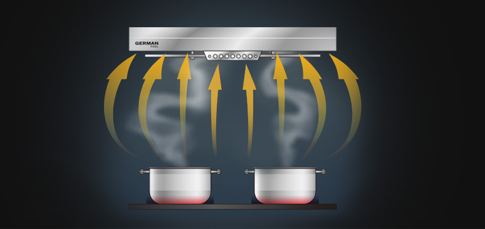 The directional current rectification technology increases the exhaust volume and extracts fumes from different directions. All-around ventilation is hence achieved.