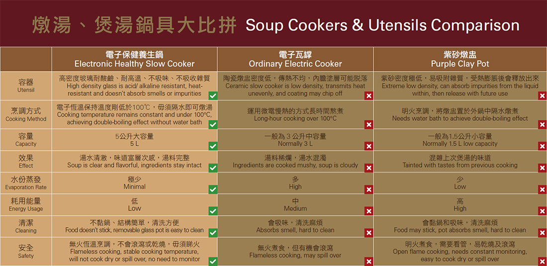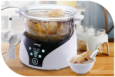 Electronic control with High, Medium and Low heat levels plus Keep Warm Function let you enjoy delicious slow-cooked cuisines anytime.
