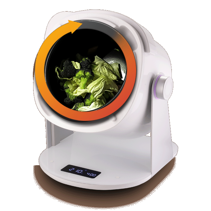 Revolutionary 360° automatic rotation technology together with 24RPM powerful motor mimics professional chef’s flipping skills, remedying the inadequacy of spatula frying and can thoroughly mix the sauce, seasoning and ingredients.