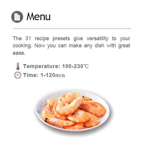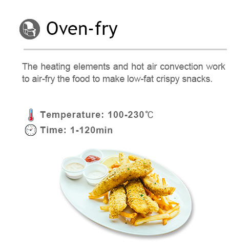 • 230℃ High-heat Baking: Heat the food thoroughly from all angles, baking it to a crispy perfection.