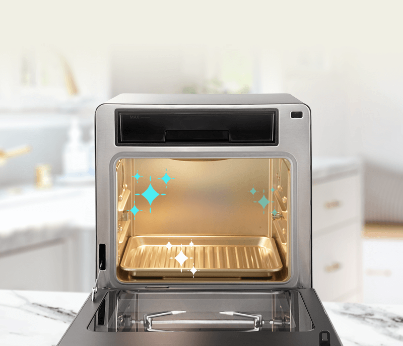 Simply tap the Auto Clean Function and the oven will release hot steam to dissolve grease accumulated in the oven cavity, clearing any food debris and odor to keep the oven cavity sparklingly clean. You may also add in descaling agent to dissolve scale built-up. Cooking is so much more fun when you when you can skip the tiresome task of scrubbing and tidying up afterward!