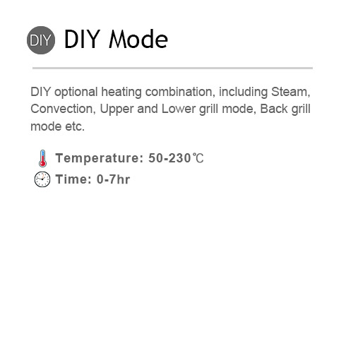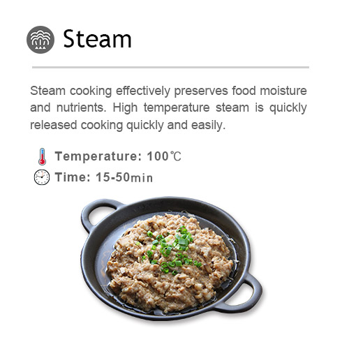The top and bottom heating elements of the steam oven can adjust the temperature according to needs. It is a breakthrough of the traditional furnace. The furnace temperature range is 30-230 °C, which solves the problem that the food is too close to the heating line and burns or smashes. There is no need to move food frequently to accommodate firepower.