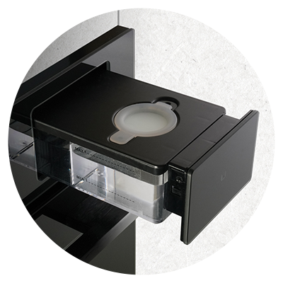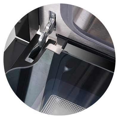 With a simple tap, grease inside the oven is cleared by hot steam.