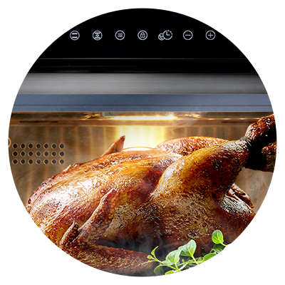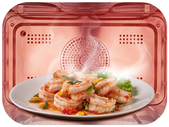 With hot air convection, grilled food is evenly cooked with crispiness, juiciness & tenderness.