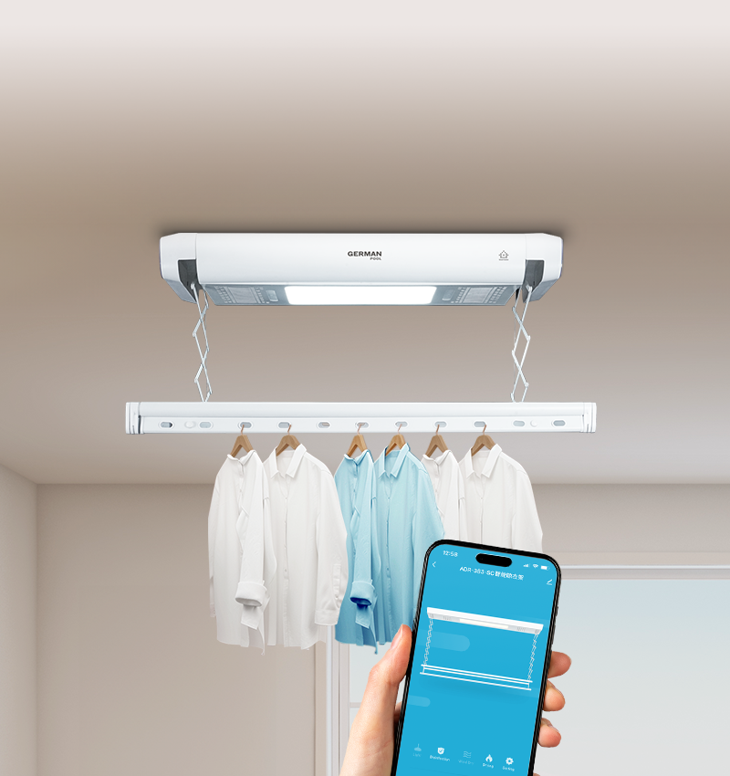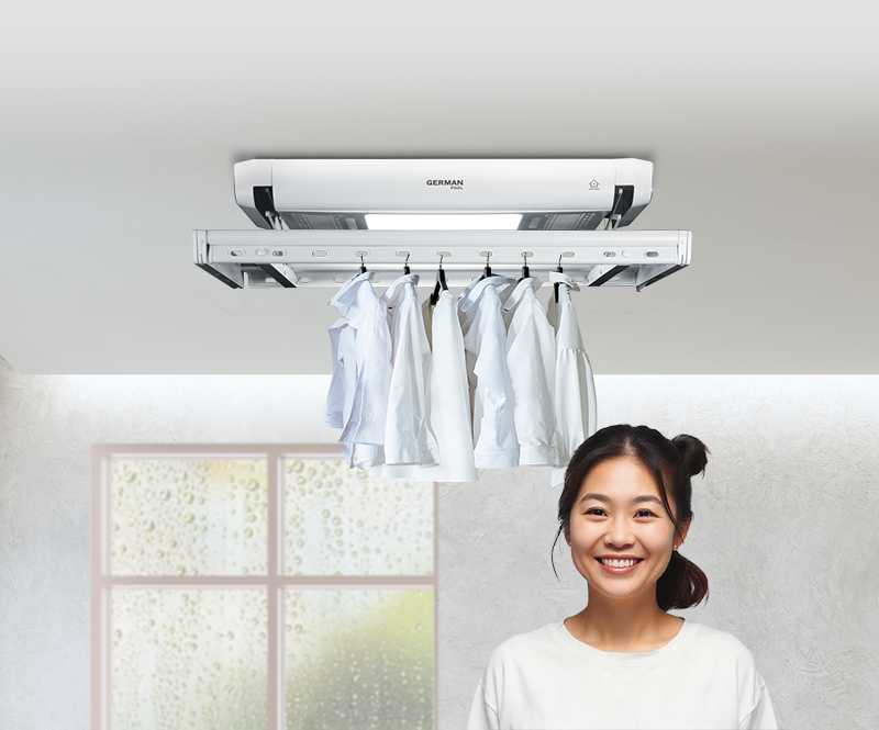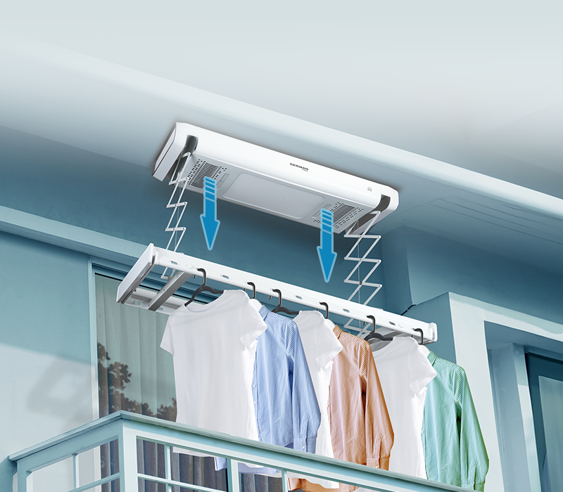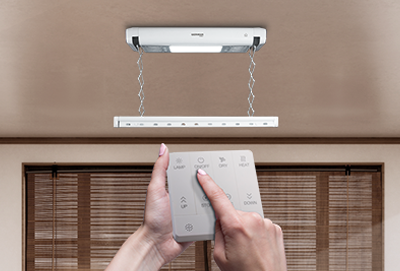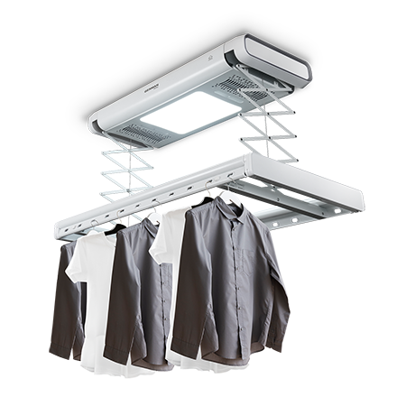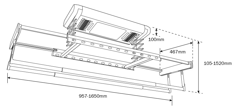 Note: During installation, extra width space for hangers must be reserved. Imbalanced weight distribution may cause damages to the Drying Rack. Make sure your clothes are evenly distributed across both rods.