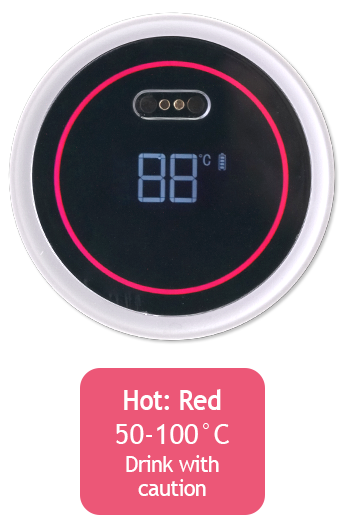 Simply tap the LED screen on the lid, and water temperature and color ring will be instantly displayed.