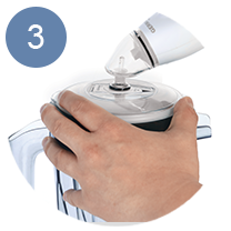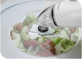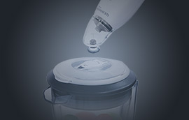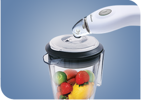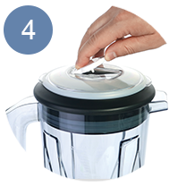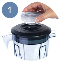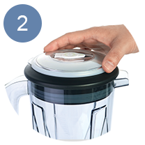 Press the vacuum sealer nozzle flat against the air valve to remove the air from the jar. Start blending.