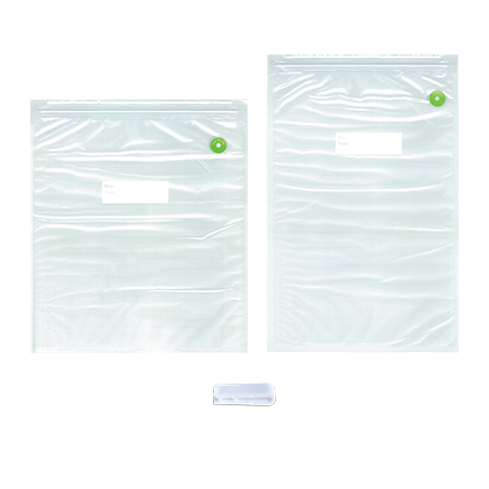 Double zipper closure ensures a tight seal. Textured layer design prevents air bubbles after bag is vacuum-sealed.