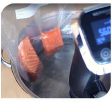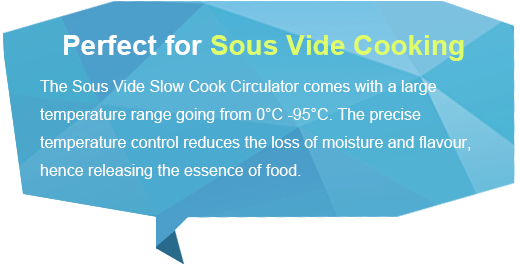 Sous Vide calls for constant cooking temperature. This can be achieved through precise temperature control. Low temperature cooking locks in the essence and nutrition of ingredients.