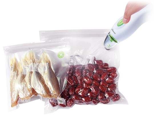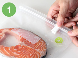 Fill and seal the vacuum zipper bag that comes with the Vacuum Sealer properly.