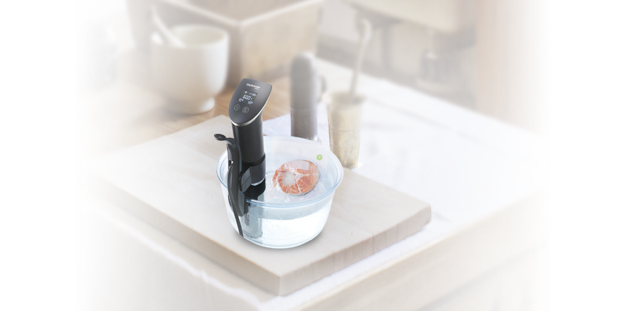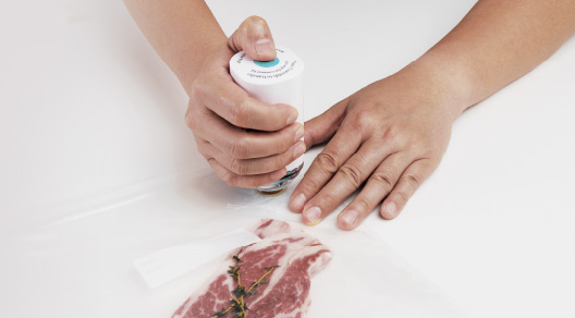 Fill and seal the vacuum zipper bag that comes with the Vacuum Sealer properly, and press vacuum sealer tip flat against air valve. Then simply put the vacuum zipper bag into the cooker that is filled with water at suitable temperature.