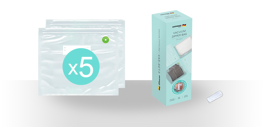 Time of marinating process can be significantly shortened under vacuum because this condition allows food to absorb marinade faster and deeper. Vacuum zipper bags are also recommended to be used together with slow cook circulator for the most even distribution of heat while preserving the original flavour of food.