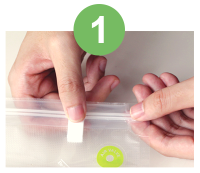 Fill and seal the vacuum zipper bag that comes with the Vacuum Sealer properly.