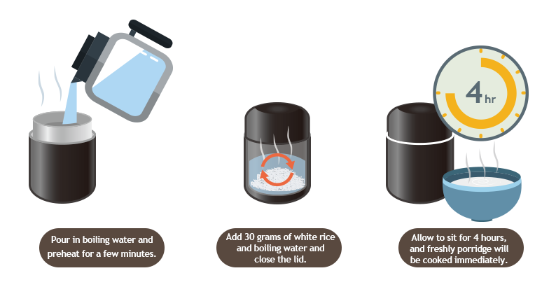 Prepare the ingredients in advance, place inside and add hot water to cook simple rice dishes. Perfect for the busy office, enjoy fresh and healthy meals.
