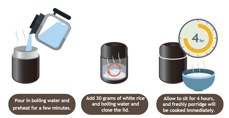 Double-layer insulation with stainless steel interior, keeps foods at the right temperatures. Achieve the simple simmering for rice and baby porridge, etc. Enjoy anywhere and anytime with the portable food jar.