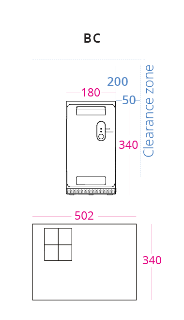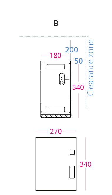 Be sure to allow additional space required if installing a sparkling model with CO2 cylinder.
