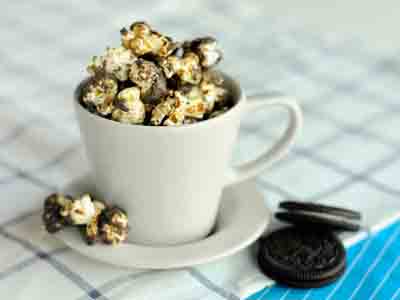 Put white chocolate chunks in a large bowl. Melt over hot water bath. Stir in cookie crumbs.