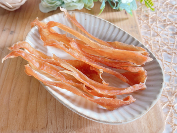 The best results are achieved by drying in two separate sessions for a total of 14 hours. The meat jerky should be fully dehydrated into thin, dry slices, with minimal seasoning (no seasoning used), making it suitable for pets to chew.