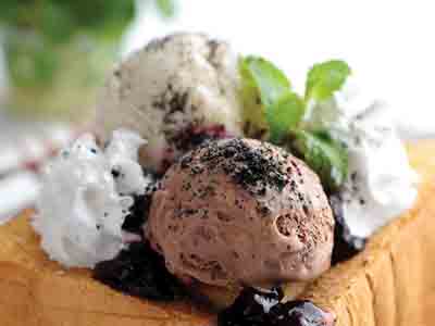 麵包放涼後打橫切出厚方包,放入光波萬能煮食鍋及低架上,以250至260°C 烘10分鐘至金黃色,放上雪糕球即可享用。