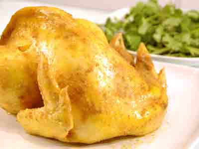 原只鸡用绍酒、盐、胡椒腌好备用。