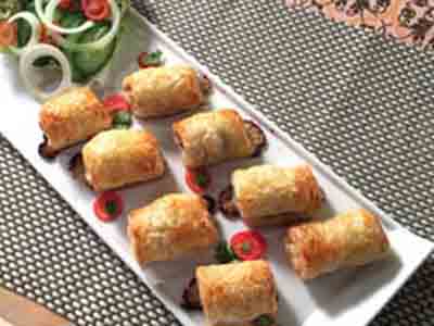 將焗爐以180°C預熱,並將酥皮卷放進焗爐約15-20分鐘即可。
