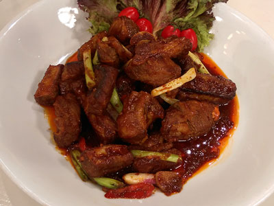 最后倒入锅中加一匙茄膏拌匀收汁。