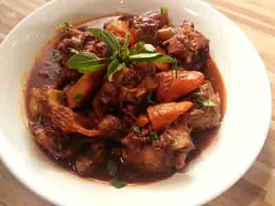 Remove the smell by blanching the oxtails with ginger and Shaoxing wine.
