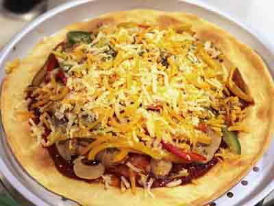 Spread tomato sauce over the pizza dough and add toppings. Bake at 250℃ for 13 to 15 minutes or until golden