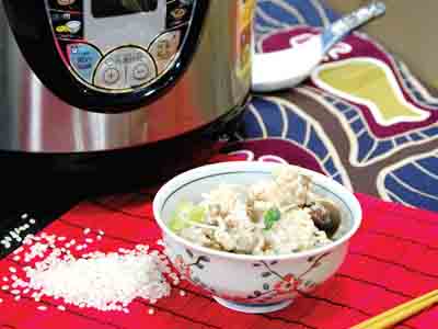 Mix marinated beef with diced ginger and seaweed. Then put beef and all other ingredients into Cooker. Close lid and press “RICE” button.