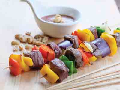 Place beef and vegetable kebab on Korean Barbecue Grill and grill until cooked.