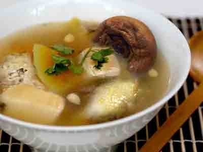 Partridge Soup with Jiashi Melon and Sweet and Bitter Apricot Kernels