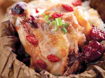 鸡腌好,加其他材料拌匀;冬菇洗净浸好。