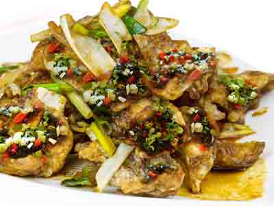 Steam fish joint for 8 minutes with the Steam Oven until it is fully cooked. Topped with boiling oil.
