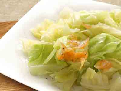 Soak dried shrimps in water. Dice cabbages.
