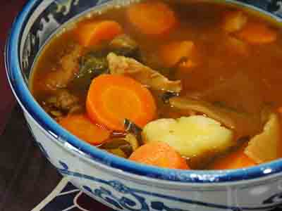 Melt curry using the boiling herbal soup to form a paste. Add to Slow Cooker along with carrots, potatoes and Japanese seaweed. Then boil soup for another 1 hour and serve.