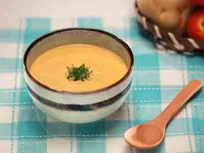 Boil water with the Auto Power Switch Multifunctional Health Cooker. Put in trypauchens, tomatoes, potatoes and lean pork. After that, add water, coriander, seasonings and blend with the Professional High Speed Food Processor for 8 minutes using the "Bisque" function.