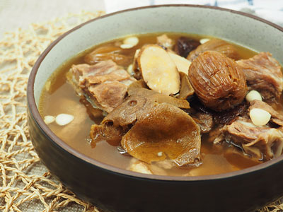 以超级全能饭锅煲水至水滚后,所有材料(除杞子)放锅内按"汤/粥" 键煲。