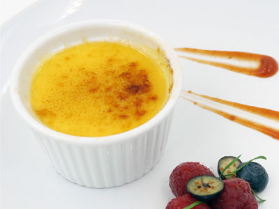 在燉蛋面灑上砂糖,用火槍將砂糖燒焦,成一層焦糖,即成。