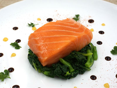 从真空袋中取出鱼肉上碟,将黑醋汁淋在鱼上,趁热享用。