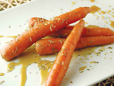 从真空袋中将甘笋和汁料倒在平底锅中略炒至有光泽 (约2 分钟),再以海盐调味即可。