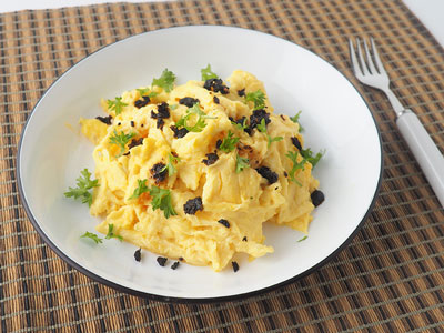 Heat up the coconut oil. Add in the egg mixture. Stir gently with a spatula from time to time.