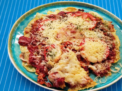 Place the potato slices onto the frying pan of the Halogen Cooking Pot. Grill them until they stick together to create the pizza crust.