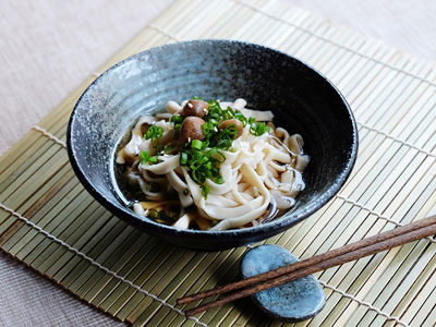 When a desirable softness is achieved, remove the udon from the Cooker and put it into ice water. Serve with the sauce.