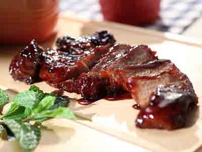 Apply a thin layer of Char Siu Sauce on both sides. Grill for another 5 min with the uncooked side facing up. Slice up and serve.