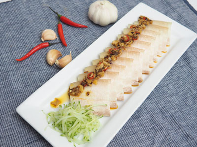 Slice the pork. Arrange on a plate and serve with the dipping sauce.