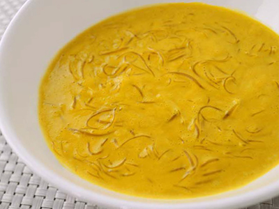 还剩30秒时,加入忌廉,完成搅拌后,将汤倒入蒸好的素翅即可。"
