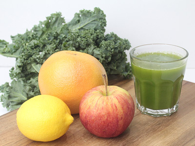 Press the power button of the Cold Press Juicer. Select "FWD" and put in the kale.