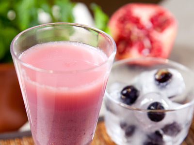 Reserve a small amount of pomegranate and blueberries to be put into the juice before serving in order to enrich the texture.